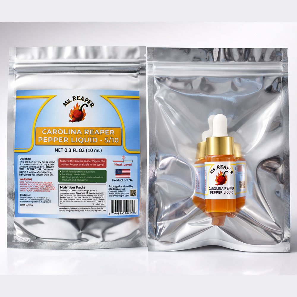Carolina Reaper Liquid Extract 10 mL. The heat level is 5/10.